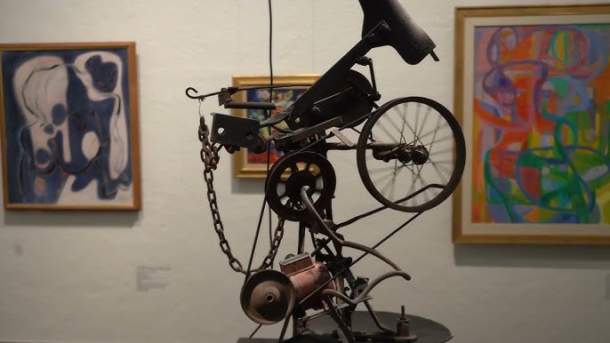 Es una escultura mecánica automatizada construida con motores, tubos, ruedas, engranajes y otros elementos industriales.